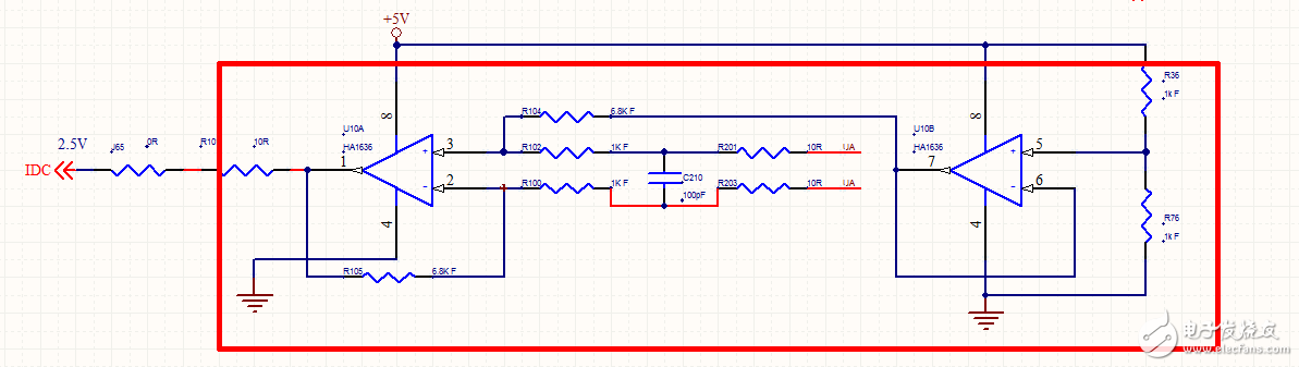 下图右边是电阻分压后加跟随器作为下一级差动放大的参考基准,左边是差动放大。