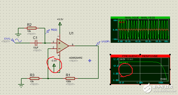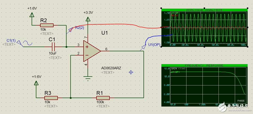 HI,nealcc ,我的基准电压是3.3V通过电阻分压后,电压跟随电路后给出的。详细如下图所示: 另外你用的仿真软件是哪个?请告知我一下,我自己也仿真一下。最后你的回答我很满意了。打算把积分给你,谢谢你的解答!