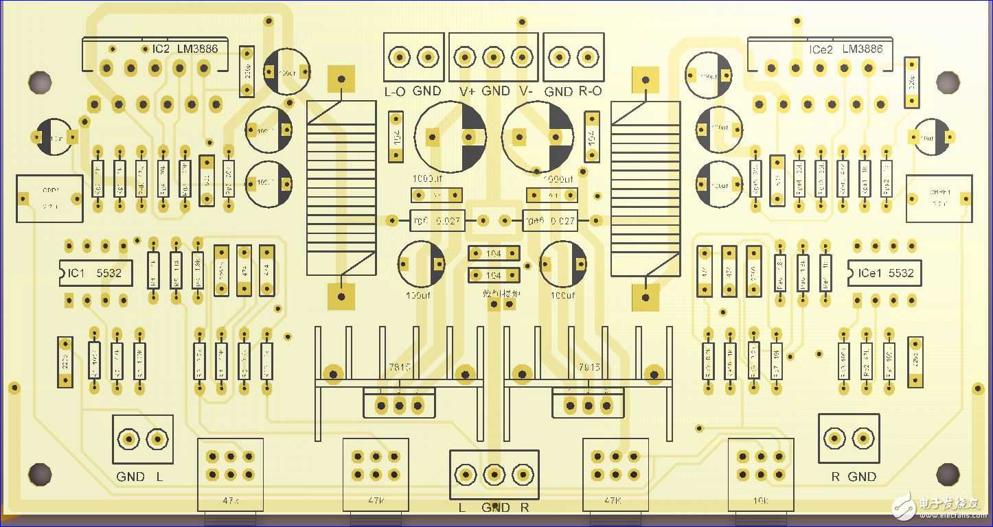 LM3886+NE5532高品质功放PCB,未包括电源板,电源板为10A全桥一只,10000uf电解x2,0.1uf独石x2,
