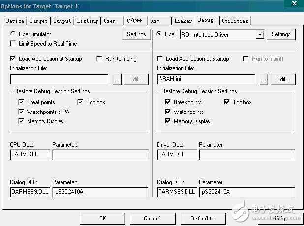 Keil ARM RVMDK软件仿真及SDRAM中调试S3C2410程序