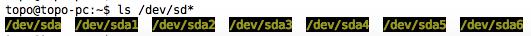 使用ls /dev/sd* 命令查看所有连接到电脑上磁盘。