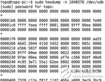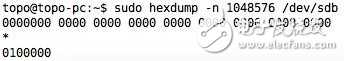 我们使用linux自带命令hexdump查看tf/sd卡中的数据: