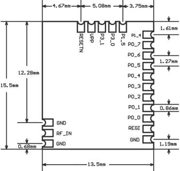 | 电流 | 0.8uA @deep Sleep mode 3mA @Stand-by mode 9.5mA @PLL mode 18mA @Rx mode 23.5mA @tx mode (Pout = 3dBm) | |