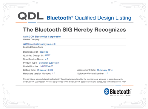 此模块采用Amiccom(台湾笙科)蓝牙低功耗芯片A8105 的SOC(8051 单片机, 32KB Flash, 2KB SRAM)是一款超低功耗、小体积的收发系统模块。遵循低功耗蓝牙协议,适合 单模式低功耗蓝牙的应用,支持I2C、SPI、UART等标准通信接口。