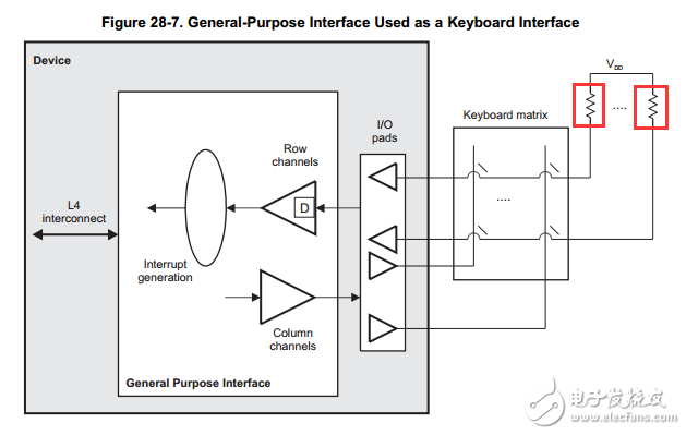 从AM4379参考手册中,GPIO用作矩阵键盘是,触发中断的引脚需接上拉电阻,如图所示: