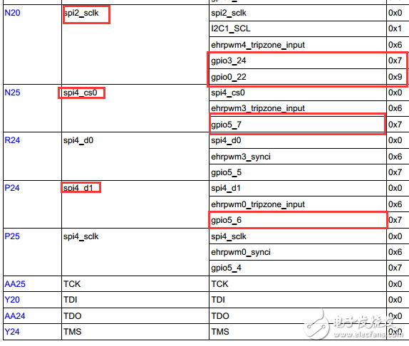 这里特别强调一下,AM437X与AM335X芯片在引脚定义上有较大不同,在AM335X中,每个GPIO都与一个特殊功能一一对应,而在AM437X中,一个特殊功能引脚可以对应对个GPIO,如下图所示:
