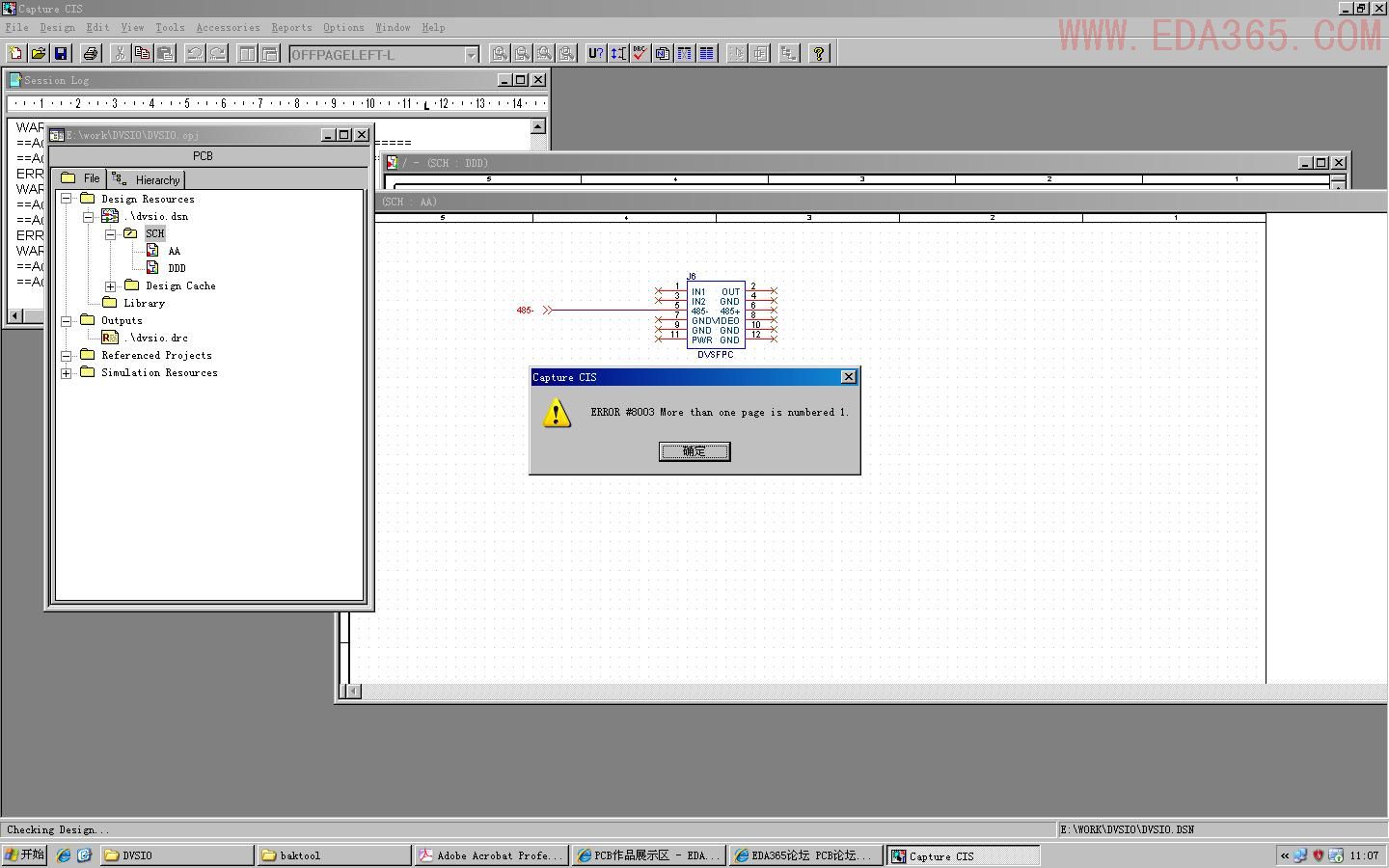 刚刚搞清楚了,主要问题在于orcad没有自动计算你的原理图页数,你可以看看title block中的页码指示,都是1 of 1,可以双击的title block