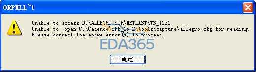C:\Cadence\SPB_16.2\tools\capture\allegro.cfg改为C:\Cadence\SPB_16.3\tools\capture\allegro.cfg,因为之前在16.2那边出过网表,默认的是16.2,所以出现以上提示!