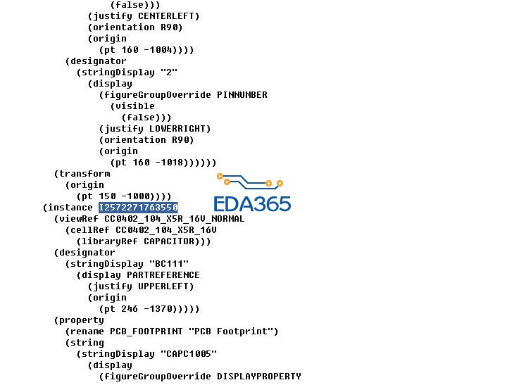 附上2张图片,一张是在Orcad中查看元件的instance名;领一张是查看导出的edf文件的某问题元件的instance值。