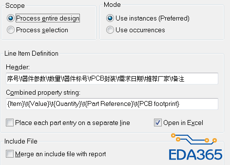 用orcad导出BOM,本来默认是导出的器件是归类在一起的,现在发现是每个器件单独一行,不知道有没有人遇到过,可能是什么原因。求大神指点!下图是设置,并没有设置单独输出一行的情况。