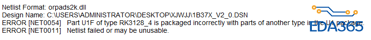 导网表时出现提示为(一部分U1F RK3128_4打包错误类型的部分U1另一种类型的包),各位大神请教下这是什么意思。谢谢!