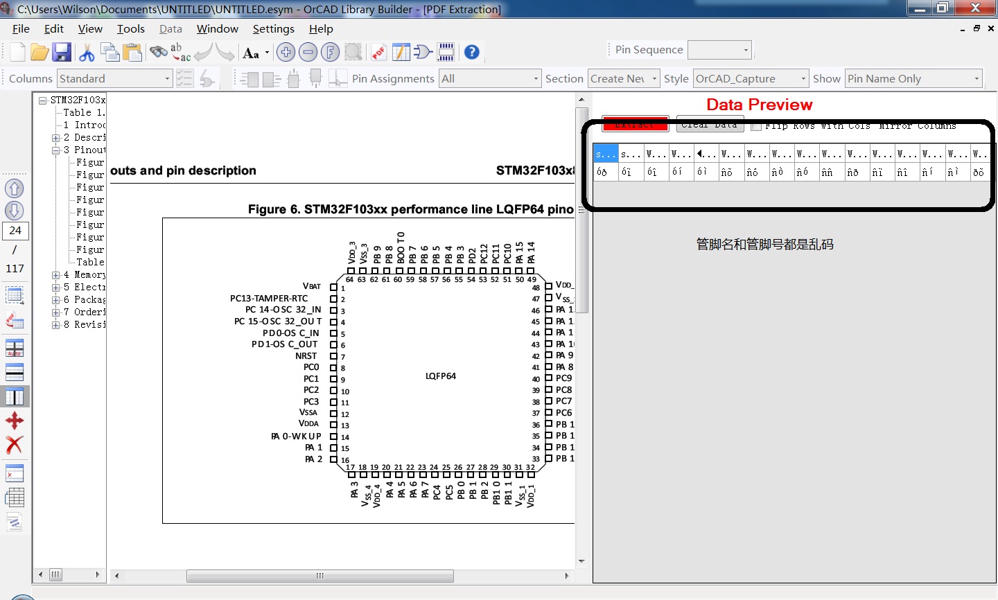 OrCAD Library Builder 提取pdf管脚名乱码,如何解决?