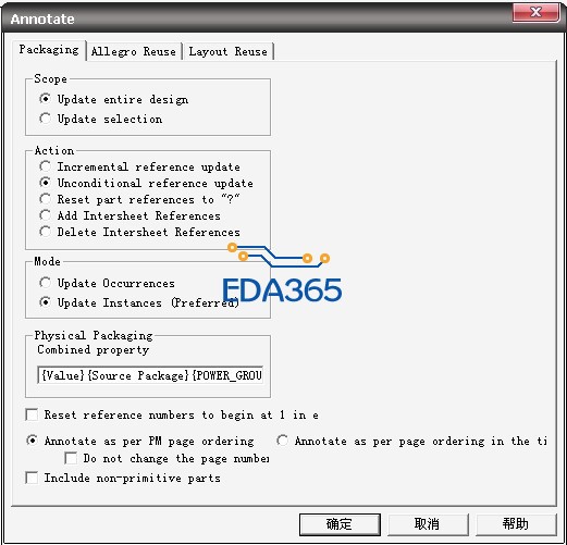 1.软件版本是15.5,Candence原理图设计好之后,把所有原件重新编号,方法是: