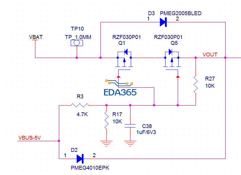 按照fallen前辈的指导修改的电路图,各位帮忙看看,刚有前辈说5v电源可能通过寄生二极管倒灌电池,这里Vout电压只能最高达到4V,电池断电保护电压3.4V,如果5V上电会给电池充电,这个mos管的体二极管的导通电压为0.5v,个人感觉好像问题不大,各位觉得呢?