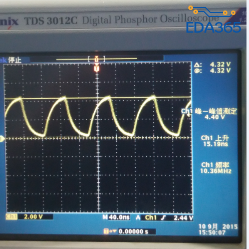 当在74HC245输出端串入电阻75欧姆时,波形比较完整: