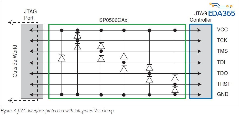 请问图中JTAG部分那个TVS管组应该选什么器件?有什么要求?