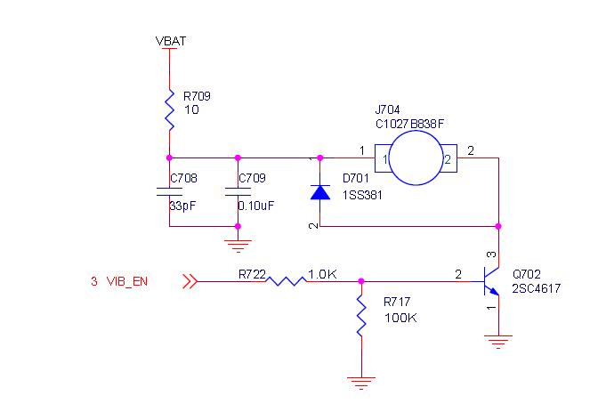 上图是个马达的电路,很多产品都有,J704 指代马达,这个原理图里 为什么要用D701 二极管,进一步你要去了解二极管,三极管Q702是干什么的,R722 R717电阻为什么取这个阻值,有什么用,VIB_EN是马达使能脚,那么是高电平是马达运转,还是低电平 为什么?