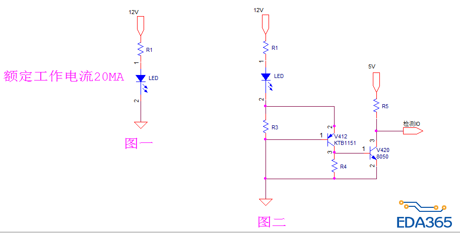 请教各位大佬: 电路图1需要增加一个检测电路,MCU检测LED灯是否发生故障(短路、断路),要求只使用用三极管、电阻、电容等简单器件。图二是我搭的一个电路,但是没法检测短路的情况,请大佬帮忙设计一下。