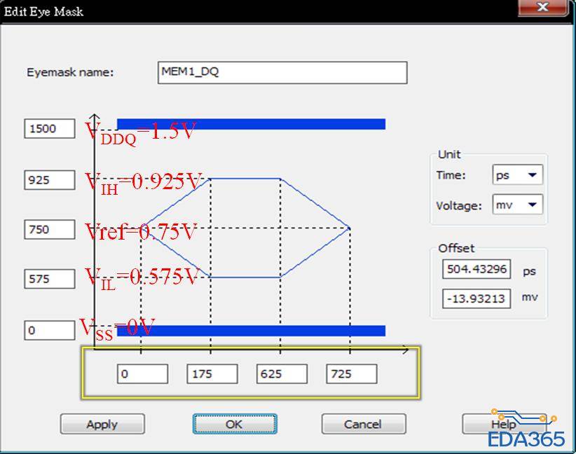 横轴的四个值里面并没有setup 和hold up的设置,这两个值是用于timing的分析,这边是对信号本身质量的分析。这边假设横轴时间依次为X1,X2,X3,X4