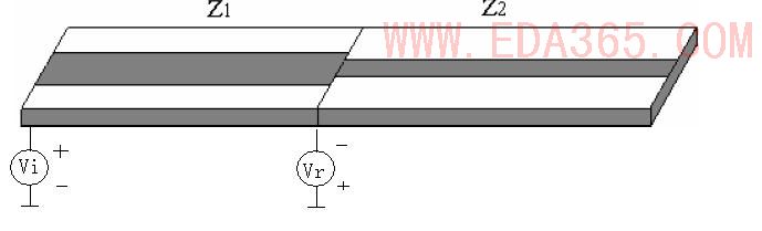 入射信号电压Vi 向着分界面传播,而传输信号电压Vt 远离分界面而传播,入射电压穿越分界面时,产生反射电压Vr ,则有:Vi +Vr =Vt 相应的当入射电流Ii 穿越分界面时,反射电流Ir 和传输电流It 的关系为:Ii − Ir = It