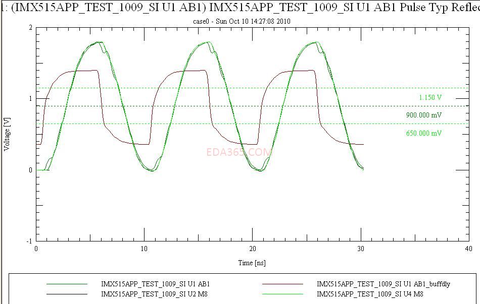 cpu到四片DDR2,我仿真的是DDRaddress的信号,得到的波形如上面的图,不明白为什么驱动端波形 IMX515APP_TEST_1009_SI u1 ab1_buferly的幅度比IMX515APP_TEST_1009_SI u1 ab1的小,看教材的例子中好像是一样的。 谢谢!