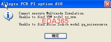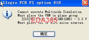 进入PCB PI软件界面后,点击analyze->Power Integrity后,可以弹出如图1所示的画面,但会出现如下的警告信息: