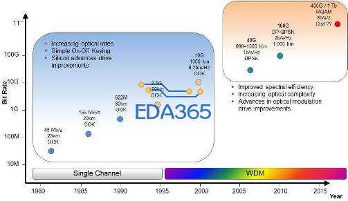 Figure 1. Advancements in optical interfaces, 1980–2015.