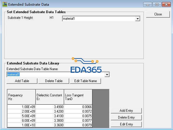 然后,将介质材料的介电常数按上面数据设置为分段形式: