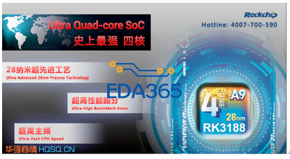在2013年1月CES展上,瑞芯微正式发布四核Cortex A9处理器RK3188,最高主频1.8GHz,GPU为Mali-400 MP4,采用先进的28纳米生产工艺,晶圆代工厂改为格罗方德以确保产量。RK3188是一款技术和制程相当先进的一颗芯片,即便放眼国际上也是一流水准,显示出国产平板芯片处理器的巨大进步。近期瑞芯微在软件方面动作频繁,升级视窗系统和升级SDK2.0,加强对视网膜显示支持,在中高端进一步拉大了与竞争对手的差距。