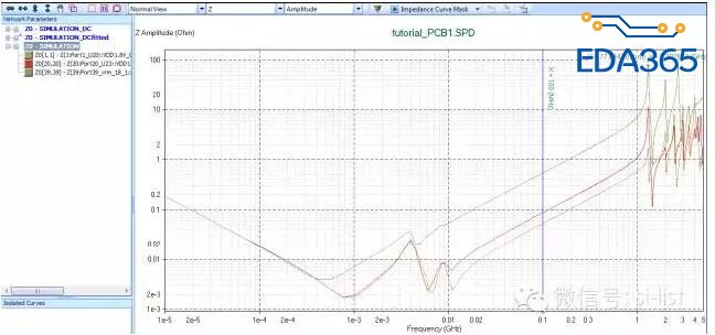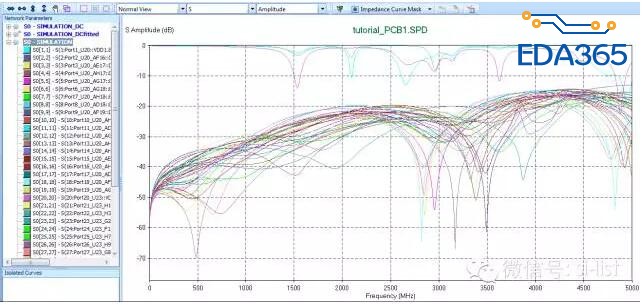 24. 仿真完成后,会有3个S参数文件,Simulation是PowerSI仿真得到的原始的S参数文件,Simulation_DC是调用PowerDC仿真得到的DC的S参数文件,Simulation_DCfitted是参考Simulation_DC结果对PowerSI原始S参数的DC和低频数据进行修正后得到的S参数文件。