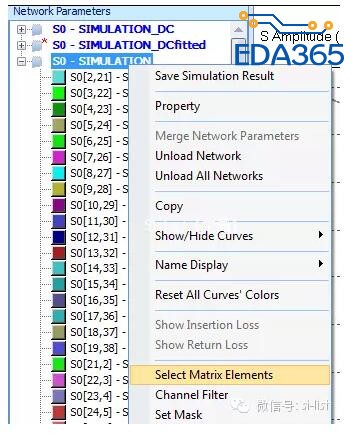 28. 在Simulation S参数的Header行,右键菜单选择Select Matrix Elements。
