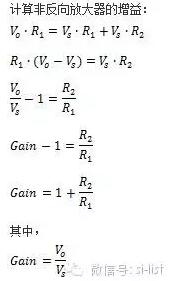 计算非反向放大器的增益: