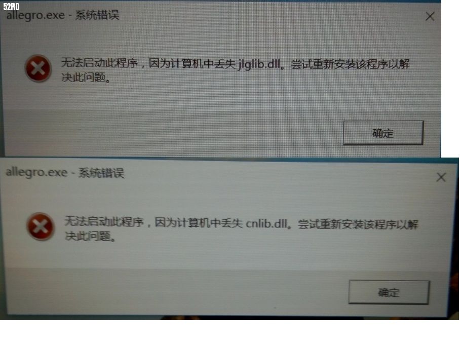 但重启系统后,不能开启orCAD和Allegro并报错。报错信息请参考图片。