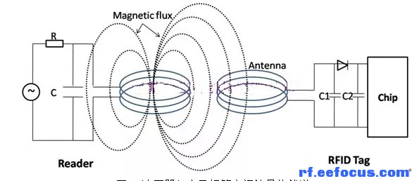 通过调整电子标签的天线线圈和电容器构成谐振回路,调谐到读写器指定的发射频率13.56MHz,这样按照该回路的谐振,标签中的线圈电感上所产生的电压达到最大值。而读写器的天线线圈与电子标签二者之间的功率传输效率则与标签中线圈的匝数、线圈所包围的面积,二者放置的相对角度以及彼此之间的距离成正比,这也是RFID标签读卡距离有一定限值的原因所在。