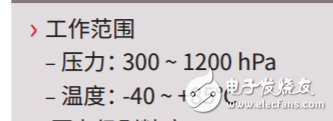 温度不多说;压力范围基本涵盖了人类正常活动的海拔,hpa是百帕,理论上计算:一个标准大气压力是101.3Kpa(千帕),这是海平面的。高度每升高100米,大气压就下降0 .67千帕。在平均海拔5、6000米的青藏高原,气压大约4、50kpa,DPS 310理论适用的。