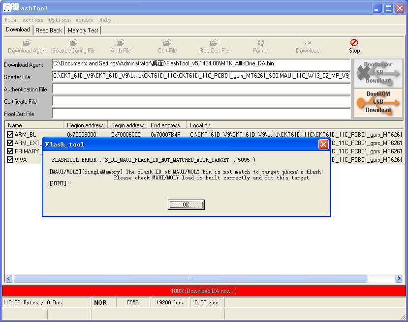 S_DL_MAUI_FLASH_ID_NOT_MATCHED_WITH_TARGET(5095),这是什么原因?