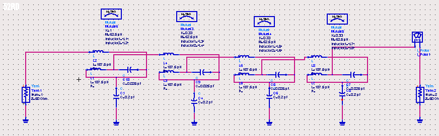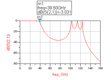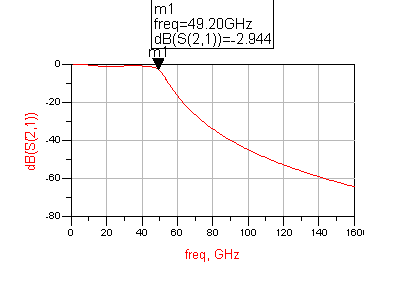 滤波电路仿真中,4个一模一样的低通级联,仿真的带宽不一样,而且在100GHZ后面有3个峰值,2阶的话就有1个峰值,3阶2个峰值。