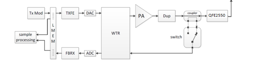 天线调谐在闭环模式下,需要实时监测RFFE到天线的VSWR是否变化,通过切换Bi-directional coupler的开关来读取 incident power和reflection power。incident power应该是发射功率,reflected power是从天线反射过来的power。两个都通过FBRX到transeceiver里。