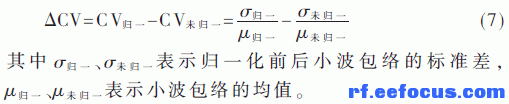 统计学中,变异系数(CV)定义为标准差与平均值的比值。本文将归一化后小波变换包络的CV与归一化前小波变换包络的CV的差值定义为小波变异系数差值,即: