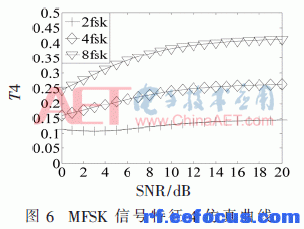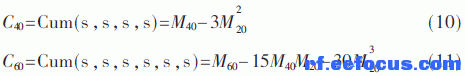 由MFSK未归一化小波变换包络的标准差值的不同,可以对其类内阶数进行分类;由MASK、MPSK高阶累积量特征值的不同,可以实现对其类内进行识别,以下为信号四阶、六阶累积量的定义: