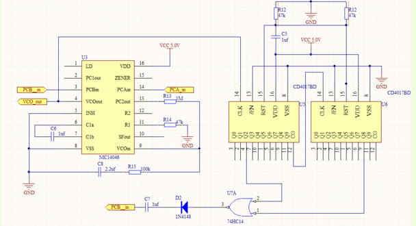 求教锁相环CD4046和两个CD4017级联组成的倍频电路