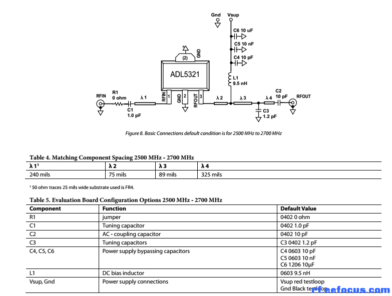 ADL5321芯片datasheet里没有给出输入输出阻抗,若采用的板材不是FR4,则输入输出端口的微带线长度以及相应电感、电容需要用ADS仿真吗?