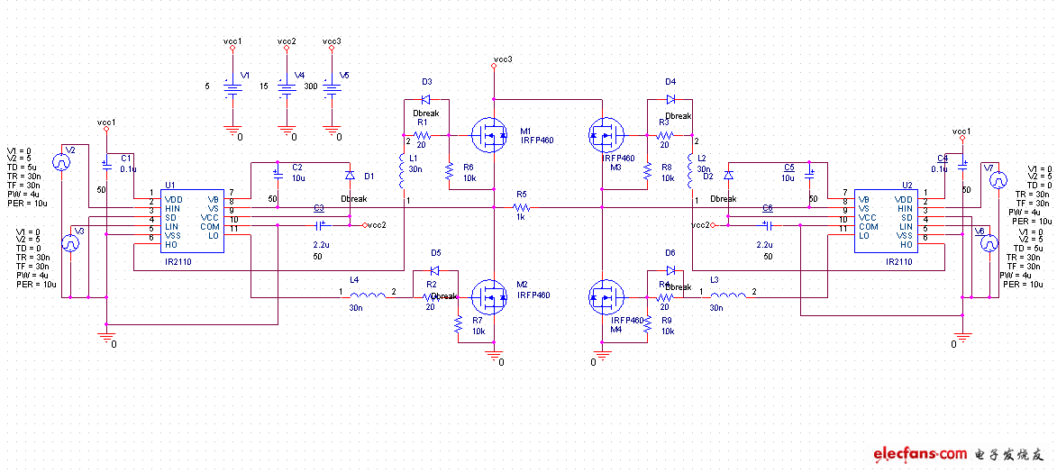 这是我用ir2110做的驱动电路图和mos管1的Id的电流图 为什么Id刚开始那么大呢