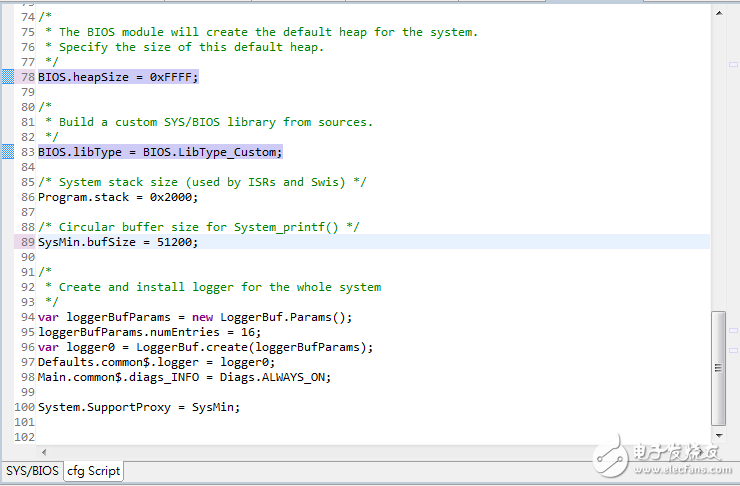 7. 打開專案的app.cfg檔案,設定BIOS的Heapsize和輸出用的bufsize,如下圖