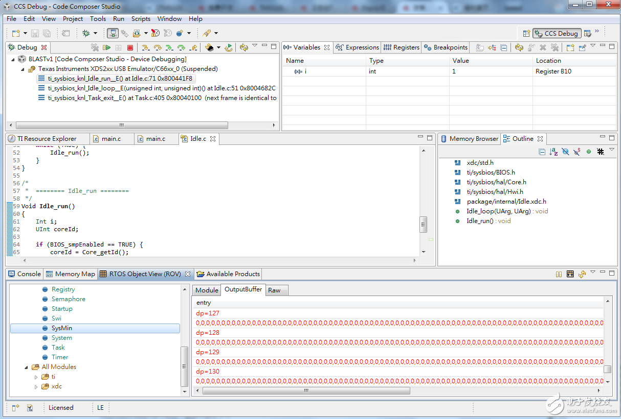 10. 在ROV視窗中選擇SysMin > OutputBuffer頁籤