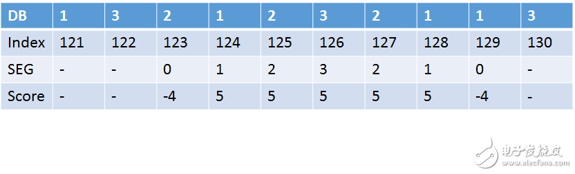 下圖為DP Table,第一個index用來記錄該Hit index起始位置為延伸的總分,之後紀錄符合和不符合的加減分