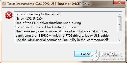 本次实验过程中在使用CCS软件时遇到了一个小问题,即无法连接到目标板,关键是刚开始的时候是能够连接到仿真器并进行仿真的,问题出现如下图: