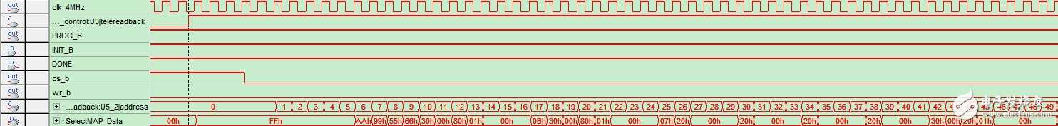 (2)手册说,回读过程发送完SHUTDOWN序列(30008001h,0000000B为SHUTDOWN指令)后,DONE信号会变低,回读完成后,再变高,但是我用逻辑分析仪观察,DONE信号一直为高电平,不知道为什么,还请大家帮忙看看,谢谢~~