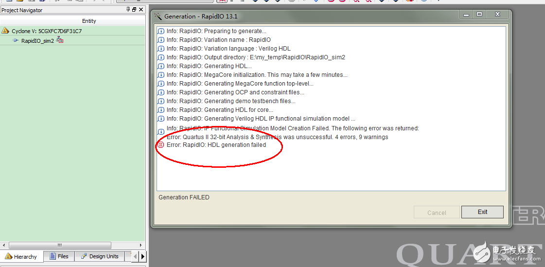 请教各位关于 Altera 13.1RapidIO IP核产生仿真模型时报错问题