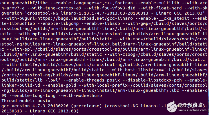 命令如下 :$ arm-linux-gnueabihf-gcc -v